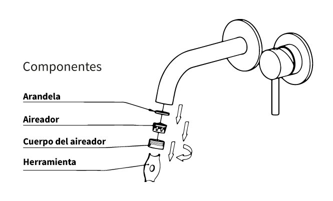 El aireador es un componente que se instala en la salida de agua de la grifería (cocina, baño, etc.) y cumple funciones clave para optimizar su rendimiento: