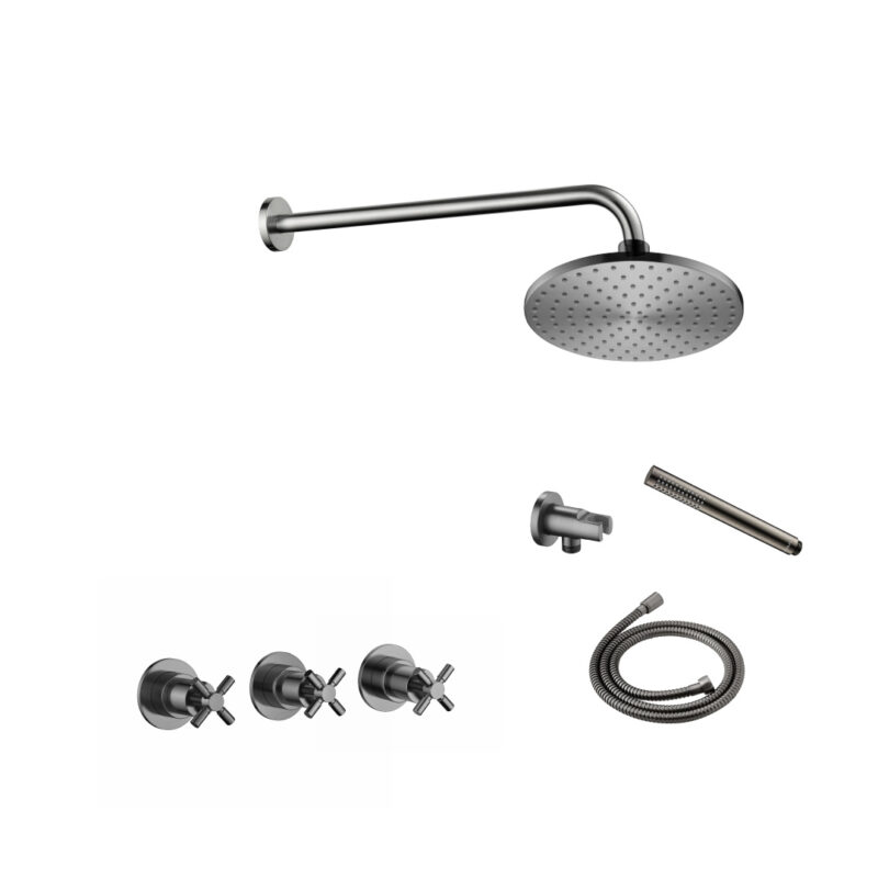 El acabado Grafito Cepillado de Ponthus se distingue por su estética sofisticada e industrial, con una combinación de tonos gris claro y oscuro. Presenta un acabado mate o semibrillante que aporta un sutil brillo metálico, moderno y elegante, ideal para realzar cualquier baño con un estilo contemporáneo.
