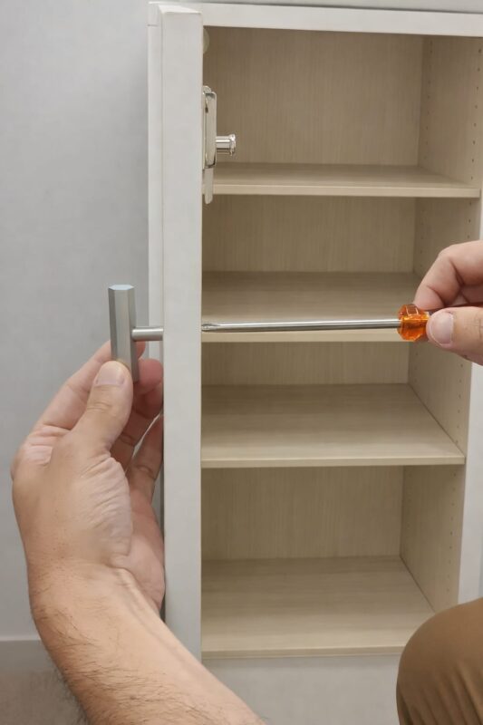 Para realizar la instalación es necesario contar con un destornillador Philips o tipo cruz. Si bien el procedimiento puede variar según el modelo de herraje, en todos los casos es fundamental mantenerlo en la posición correcta, sujetándolo con la mano para evitar que se mueva o se desalineé durante el atornillado. También es importante no ejercer fuerza excesiva sobre el tornillo, ya que esto podría dañar la rosca interna del herraje y afectar su correcto funcionamiento.