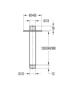 Brazo para Ducha Vertical Cuadrado para Techo Cromado