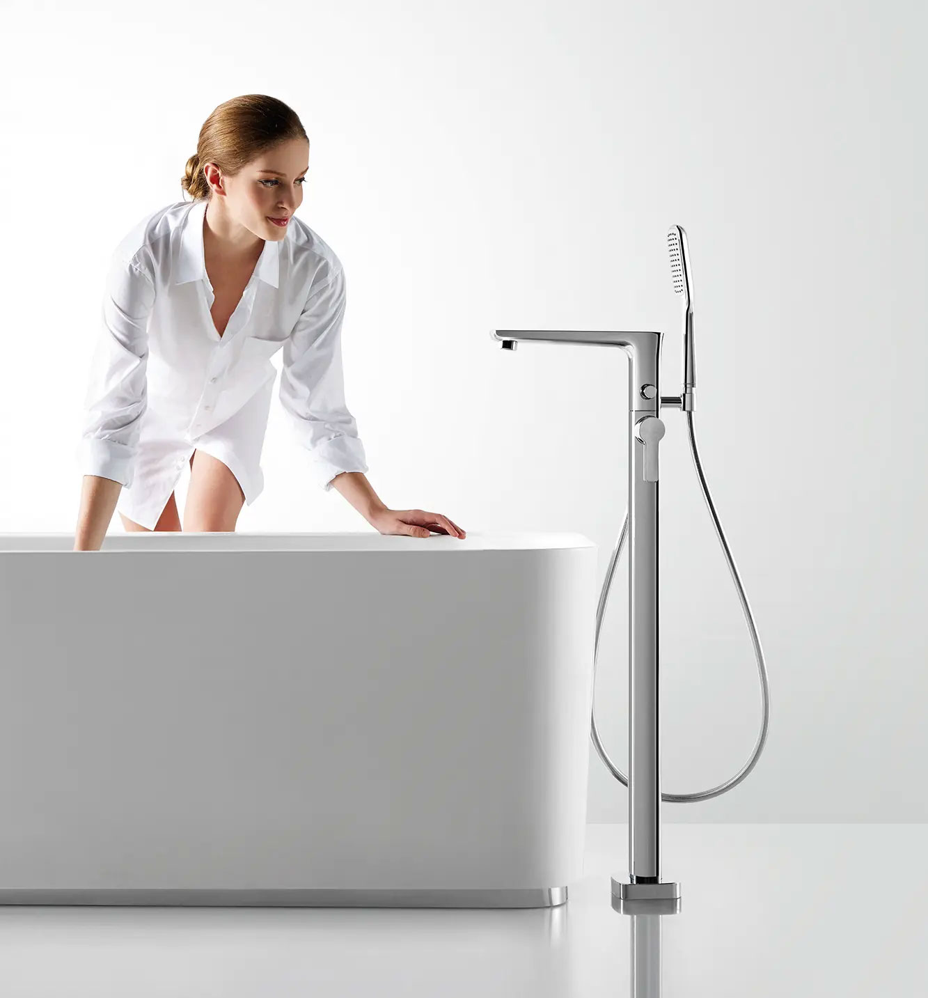 Grifería de pie para bañera con duchador de mano