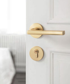 Juego de manija de puerta con cerradura. Está diseñado para puertas interiores y es compatible con una caja de cerradura estándar. Fabricadas en latón sólido. Se entrega como un par, incluyendo la placa de llave (escutcheon) haciendo juego.