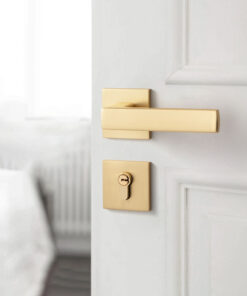 Juego de manija de puerta con cerradura. Está diseñado para puertas interiores y es compatible con una caja de cerradura estándar. Fabricadas en latón sólido. Se entrega como un par, incluyendo la placa de llave (escutcheon) haciendo juego.