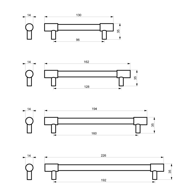Largo | 130 mm, 162 mm, 194 mm, 226 mm |